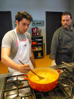 The chef was actually born in England, but moved to Italy when he was ten or so. He seemed like a pretty cool guy. He is teaching one of my classmates how to make risotto here: